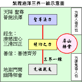 其次,是紫霞施澤的隆重,「唯我金蘭道觀,誠蒙 師尊恩澤: 第三,是紫霞施澤的法力,「神人相通,科儀禮節,清高脫俗,與眾不同。糖鹽米一粒化千萬粒,一金紙化千萬紙,一衣包化千萬衣包,一經咒化千萬經咒。廣施德澤,無邊無涯,千千萬萬,恒河沙數。」(龔壇主2001/8/05) 所以說,紫霞施澤眾所不同,是有理由的。