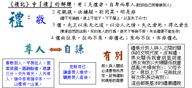 龔中成壇主曰:『正確方向、正確方法、正確關係,循規蹈矩,依正行道,不偏不倚。』(壬午年五月初六日)提醒我們要在修真行道的方向、方法、以及相互的關係上,堅持性命雙修,處理好君臣、父子、夫婦、兄弟、朋友這五倫關係,堅持九美八德,循規蹈矩,依照正道不偏不倚而行。作為壇生來說,更要將「主善為師、貞義禮和」的壇規、三皈五戒的基本戒堅持好、實踐好。 夫子在《中庸》裡面有一段話:「修身以道修身必須由正道去修,修道以仁而修道的功夫便離不開仁。仁者,人也仁的道理就是愛人如己的意思;親親為大愛人又以愛自己的父母雙親為最重要。義者,宜也義是修身的功夫中有宜與不宜(應該做與不應該做)的分別,尊賢為大其中又以尊敬賢德的人為最重要。親親之殺親愛自己的親人,必須要分出親疏遠近的分別(父母、君臣、夫婦、兄弟、朋友),尊賢之等尊重賢人也要分出等級和程度,禮所生也這就是禮發生的原由。」 原來禮的產生,是堅持貞義的必然結果。修道者,明白天地之道,並且堅持「貞義」的話,便應該要知道「禮」的重要性。 什麼是「禮」呢?「禮」就是「克己」(克己復禮)的態度和功夫,如果修道之士連「克己」都不肯去做,那就談不上修道了。事實上,修道的過程,就是不斷地「克己」的過程。「克己」分開內外兩個方面,自己約束自己,是一方面;制定的法規戒律,又是另一方面。表現出來,就是對他人、對朋友、對長者、對賢人、對親人的禮敬、禮儀、禮貌、禮讓、謙恭、客氣等等態度,也有對組織、規條、紀律的依循和遵守,這即是 壇主所說「循規蹈矩」的意思。 呂純陽師尊曰:「禮尚往來,克己復禮。禮義之邦,彬彬有禮,禮多人不怪。」(庚辰年三月初五日) 在這裡,我們談談一些平常與「禮」有關的現象,以作為大家警惕,謹記「非禮勿言、非禮勿動、非禮勿視、非禮勿聽、」有則改之,無則加勉,希望藉以提高我們道門中人的組織性、紀律性。 修道之士及一般善信,應知敬畏天地,尊奉 師尊、祖師及仙真佛聖。