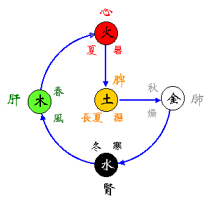 2003年6月22日便是夏至,是廿四節氣中陽氣最盛的時間。從右圖五行來看,是夏進入長夏,即火進入土之時。人身是一個小宇宙,與大自然息息相關,